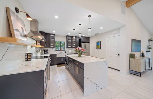 -Luxurious, fully-equipped kitchen, including brand new stainless steel appliances, Keurig K-Duo, Caraway pots and pans set, waterfall island