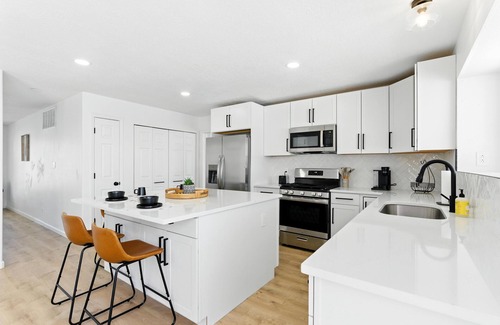 Make yourself at home in this fabulous 4-bedroom Albuquerque retreat with private pool! With 1 king bed, 4 queen beds, a cozy futon and over 3000 sqft of living space, this house is perfect for families or groups. 3 living areas, 2 story home with game room! Air Hockey table, Poker Table and Pool, this home is a true entertainer's dream home! Enjoy the convenience of a laundry area, workspace and WiFi. Two full bathrooms ensure everyone has space to freshen up. Kickback, relax, and enjoy everything ABQ and our house has to offer!