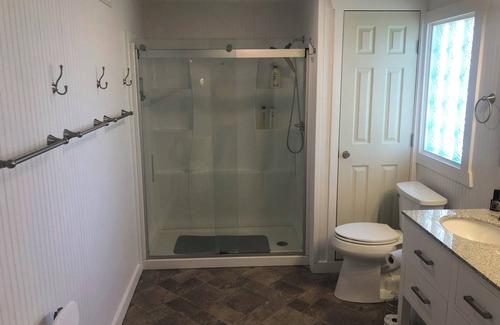 The 5th bedroom is slightly smaller but also has an exterior entrance from the covered porch with a private bathroom, TV with Firestick, mini-fridge and coffeemaker in-room. This room rents for $175.00 per night plus tax.