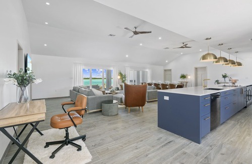 A large kitchens and an inviting great room for those nights you want to enjoy at home. The villa also have a powder room in connection to the great room. You will have your own private large and heated Infinity pool, and the beach and dock is right infront of you. There is a large Gazebo with dining area for 20 people in our garden, and there is also a gazebo at the beach for you to enjoy the most beautiful sunrise and sunsets. Or just to find some shade at our beach.