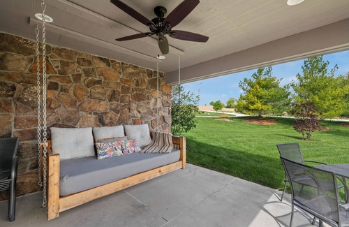 The lower level also features a flat screen tv with a DVD player and access to a cozy patio. There is a large bed swing on the patio for reading your favorite book.
