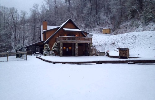 Luxury Creekside Lodge with Hot Tub & Game Room, Great for Large Groups! is located in Bryson City. Luxury Creekside Lodge with Hot Tub & Game Room, Great for Large Groups! provides accommodation, featuring Pet Friendly, Bedding/Linens, Parking, among other amenities. This Cabin features Pet Friendly, Bedding/Linens, Parking, to make your stay a comfortable one.