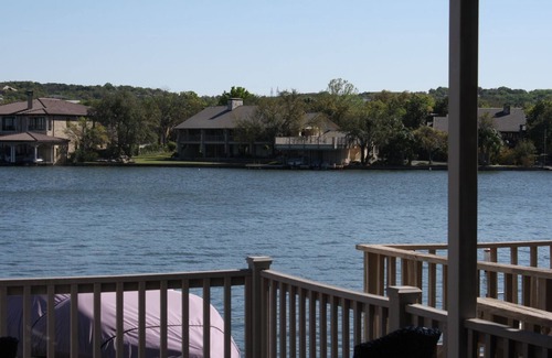 We have learned that there are some very exclusive amenities that only certain homes can provide. Not only is our home lakefront it is an “East Facing" unit which allows you to use the deck in the evening all summer long without the scorching sun in your eyes or the blistering heat that makes many decks unusable during the summer months. You will have amazing lake views during the day and tranquil relaxing views at night. We have a double-decker deck with one deck off the living room and one upstairs off the master bedroom (with a spiral staircase down to the lower deck). Our main lower deck is covered and furnished so you will enjoy grilling, eating dinner here, or just relaxing with a cold drink while you watch the water activities in the cove (stand up paddle, jet skis, and boats). We have outdoor table seating for 6 and a super comfy outdoor couch so plenty of seating for your entire group. When we are in town we spend most every evening out on the deck and we bet you will too!