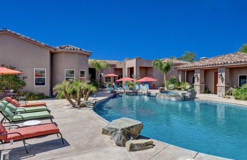 Luxury Estate, magnificent pool and spa, large cascade waterfall, 5000sqft Home has 6 Bedrooms , 4 Bathrooms, and max occupancy of 12 people. The minimum rental for this property is 1 nights, but this can change depending on the season you plan on staying. Previous guests have given good rated it, and VRBO labeled it a top-rated House because of the excellent services rendered by the owner or manager of this House, and has consistently provided great experiences for their guests. Most families or guests that use it recommend it to their friends and some of them are repeat guests. House has a friendly neighborhood, and the Thousand Palms has interesting places to visit. If you want to learn more about the House in Thousand Palms, such as places to visit and things to do nearby, you can check below to learn more.