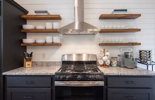 A fully stocked, modern kitchen is waiting for you to use as much or as little as you want! The kitchen boasts a full range of stainless-steel appliances, and no detail is overlooked, from a gas stove and oven to a high-quality Keurig coffee maker. Start each day by brewing coffee your way and choosing from many outdoor spaces to enjoy it.