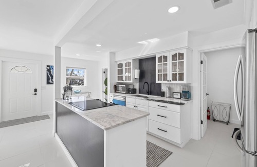 Escape to Blue Lagoon, a paradise this 4bed, 3bath luxury home features modern design, white porcelain floors, mock beach, & a standalone tub under a saltwater fish tank. Wake up to water views from your room & relax in a private oasis with pool, fire pit, and stunning sunsets Backyard has a white sand beach feel & kids enjoy the private park while adults grill in the pergola. Walking distance to shopping and dining and minutes from downtown, Book now on Airbnb for ultimate luxury and relaxation