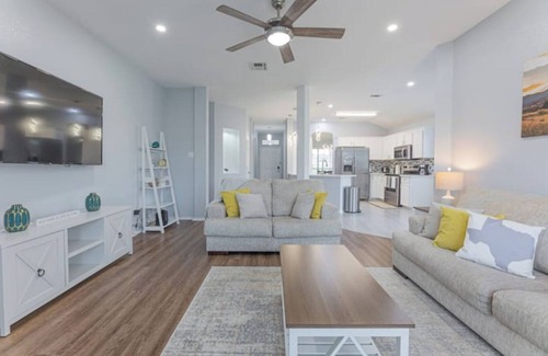 Discover this chic retreat, ideal for small group vacations! Unwind in two spacious gathering areas, providing serenity while remaining close to Harker Heights' attractions. Just 15 min to Fort Hood Main Gate, 3-7 min to grocery stores, shops, dining, & I-14 access. Perfect for both adult-only groups or those with kids. Ensuring your travel tranquility is our top concern. We can't wait to exceed your expectations & make your stay unforgettable. Book now for an unforgettable experience!