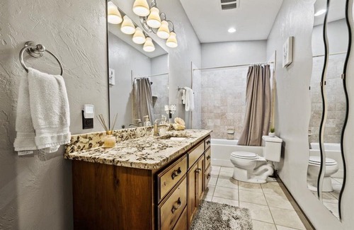 Beautiful home with a 12 person hot tub and a high end massage chair. Kitchen with everything you need for a great dinner including a sous vide. Lots of room to enjoy with outdoor kitchen and fire pit. Lots of parking and gated access. Every thing you need to enjoy your time here. Separate family room with tv and Xbox for multiple hangout spaces