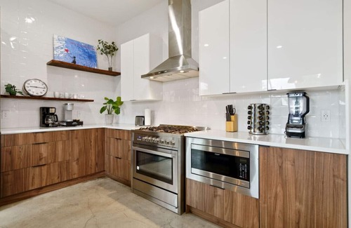 Escape to this Stylish Designer Retreat in the heart of Austin—perfect for families or groups of up to 12! Step into a vibrant, open-concept living space featuring a plush blue sofa, bold decor, and Instagram-worthy neon art. Each bedroom offers unique, colorful designs and murals to make your stay memorable.