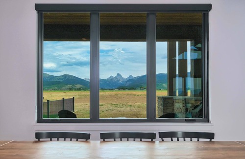 Modern mountain retreat with panoramic Grand Teton views, private hot tub, home theater, and chef’s kitchen. This 6BR/4.5BA luxury home sleeps 12 and offers high-end comfort, 5,500+ sq ft of space, and seamless indoor-outdoor living on 6 private acres just 20 minutes from Grand Targhee Resort and 45 minutes from Jackson Hole.