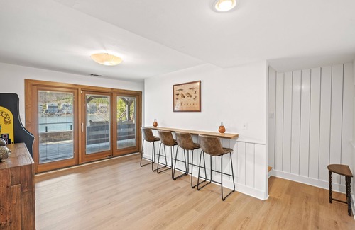 From the moment you step inside the home the water views instantly relax and beckon you to the fantastic screen porch that runs the full length of the house. This is were we spend most of our time for sure. Beautiful knotty pine hardwoods flow throughout the main. The living room offers vaulted ceiling, stone fireplace with fabulous lake views with a pullout couch if needed! Master on main and additional full bath on main is ideal for family and lake guests. Terrace level provides a second living/gaming area with arcade and bar, two guest rooms and full bath. One bedroom has a queen bed and more amazing lake views to wake up to and the other is a 4 bed bunk room with all queen beds. Perfect for larger reservations.