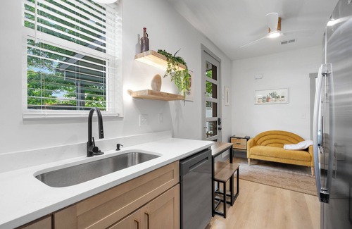 Book today to enjoy this brand new stylish modern contemporary centrally-located home in West Nashville! This unit is on the lower level with its own separate private entrance. The house has a fenced & gated shared courtyard. Minutes from most popular attractions (Parthenon, Country Music Hall of Fame & Broadway). Surrounded by many dining options, trendy boutiques, and scenic parks. This home is perfect for corporate temporary housing or an extended Nashville adventure!