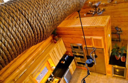7-bathroom luxury log cabin that can accommodate very comfortably 8 adults in 4 private bedrooms plus up to 8 kids in a spacious Bunk Bed Loft. In addition, there is a Queen size bed in a private Fireplace Suite, a futon in a Game Room, and a twin-size foldout chair in two bedrooms that can accommodate additional guests if needed.