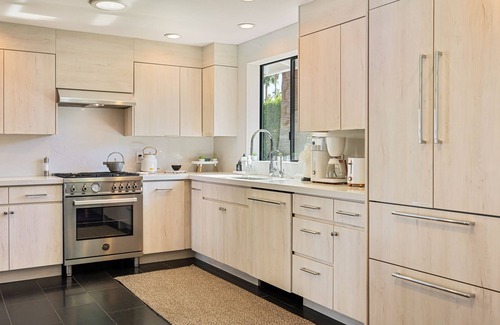 You'll find a well-stocked, modern kitchen with high-quality appliances and many kitchen items you'd expect to find in a quality home with serving dishes and items needed to cook and serve a gourmet meal in the home.