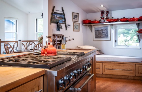 The gourmet kitchen includes a twin ovens, 6-burner gas range, wine fridges, a warming drawer, Le Creuset cookware, and every utensil a chef could ask for. Propane and charcoal barbeques (charcoal provided). Comfortable beds with Egyptian cotton sheets and handmade comforters ensure a restful sleep before your next adventure.