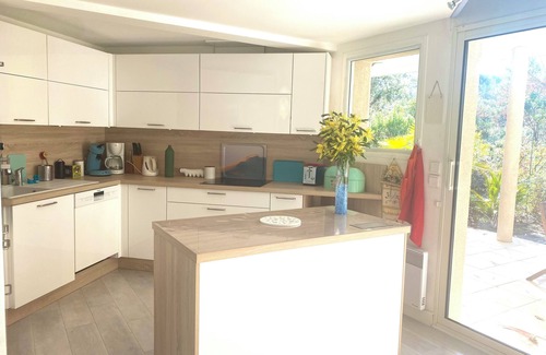 The villa is very quiet and sunny with relaxing views of the forest. It consists of 5 bedrooms on the ground floor and a sixth on the mezzanine, including 2 bedrooms each with 2 single-beds ones, and two bedrooms with a large double bed and private shower.