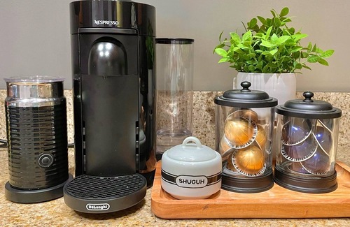 • Kitchen: Stainless steel appliances, Keurig, air fryer, blender, cookware, pantry basics, and breakfast bar