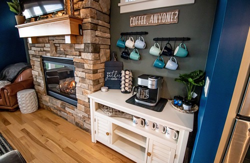 The early risers will love the coffee and tea bar. Grab a cup of joe and sit in one of the cozy blue chairs facing the lake. This is one of our favorite spots in the house! When everyone wakes up, make some pancakes in the fully equipped kitchen. There are many things to do in Ludington, flip open the guidebook on the kitchen island if you need inspiration.
