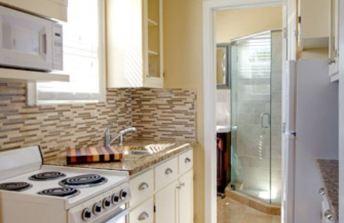 (No Pool Access/Use) Our Luxury Suites with Queen (located on the second floor) feature a queen-sized bed, a fully-equipped kitchen, a spacious living area with convertible queen sofa bed, and one bathroom with shower. Other features and amenities include: In-Room K-Cup brewers with assorted gourmet coffee & tea selections Complimentary Wi-Fi Internet access Luxurious 700-thread count Egyptian cotton linens Plush Deluxe Mattresses and bath linens Designer bath products (shampoo, conditioner, lotion, facial/body soap & makeup remover wipes) Guest information booklets with options for local dining, shopping and entertainment Hair Dryers (Ionic 1875-watt) Nightlights Luggage Racks Multi-port charging station for devices LCD HD Television with Comcast Cable Private Outdoor Patio with lounging areas on the second floor for guests only Steam Iron/Ironing Board Complimentary on-site parking Guest-accessible laundry facilities Lush, tropical landscaping