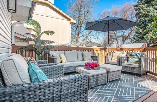 Pool gathering Anyone? Large in-ground heated pool and hut tub are the center attraction of this large private back yard. Fully fenced, large deck and plenty of pool deck for entertaining. Situated directly across from an amazing park & walking trail. This stylish fully remodeled home is the perfect location for entertaining at home or going out. Easy access to the Dodge Expressway, Village Pointe and many more restaurants and shopping. Located in a peaceful and family friendly neighborhood. Please reserve the place with the correct number of guests as there is a price difference.