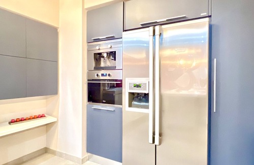 The villa has a modern integrated kitchen with full appliances, a washing machine, a dryer, an iron and ironing board. It offers 4 bedrooms for up to 8 people, air conditioning, 6 TVs and WiFi. It also includes a multimedia lounge with TV, music, pool table and a separate kitchen. In the garage there is a ping pong table.