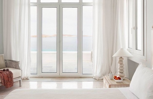 Another two separate garden apartments are located below the swimming pool, accessible by a side staircase, have own kitchenette, living space and bedroom with en-suite bathroom. Ideal for staff, or extra guests wishing to have independence from the main house; both have floor to ceiling windows with striking seafront views.Located in Aleomandra and facing the fantastic Sunsets over Delos Island, Mykonos Dream is conveniently located just few minutes drive from the culture rich streets of Mykonos Town, Ornos Marina and Agios beach, making it a very rare and exclusive Island retreat. For larger parties, its Sister Villa, Seaside Delight, is an accommodating option to offer additional space and privacy while allowing the entire group to partake in one fantastic vacation! Services included with your stay: 8 hours daily maid service; change of bath & pool towels daily; change of linen three times weekly;
