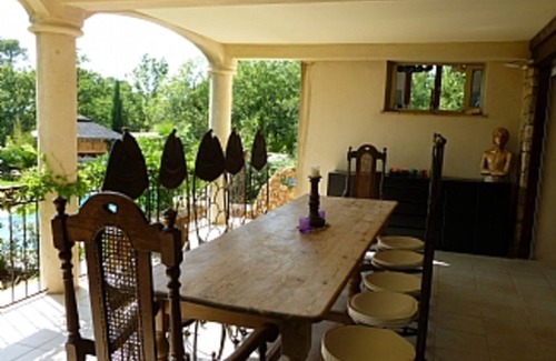 Located in a quiet and completely private location on the edge of a charming village half an hour from Cannes and other coastal towns such as Saint Raphael and Mandelieu, with Saint Tropez 45 min away. This very spacious, luxurious villa, is extremely well equipped including home cinema, satellite television and for the sporty a slate bed pool/billiard table, table tennis table, football table, a boules court as well as a well equipped exercise room including the latest spinning bike. The beautiful 11 x 4m heated swimming pool is the key freature of the property and set in one acre of gardens in a completely secluded location with stunning views. Overlooking this pool is also the gas barbecue and table seating 12 on the terrace. Internally there is a pond housing some very large Koi carp and numerous seating areas externally and internally to relax and enjoy your holiday. Wifi (fibre optic) connection throughout as well as English and French tv, 100's of DVD in the home cinema (tv) upstairs. Perfect for one or two or even three or more families to relax together and perfectly located to enjoy the beaches, forest and lakes close by as well as charming provencial villages with good restaurants and markets.
