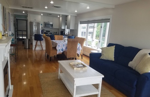 Two bedrooms suites with private bathrooms. Fully furnished with open kitchen, dining and living area with a private deck overlooking Narragansett bay and Newport. In the morning enjoy your coffee while watching the sunrise over the bay and afteroon drinks watching the boats sail by. On Sundays a free concert at East ferry. Steps to town to stroll shops, restaurants and the ferry taking you over to several islands to explorer. Minutes to Newport which hosts the amazing Jazz and Folk festivals. A Specular fireworks show celebrating Indepence day in your front yard.