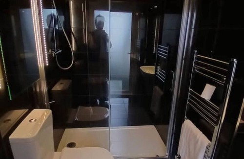 Situated in an attractive Victorian House in the enviable position between Royal Troon Golf Course and Prestwick Old Course, this spacious and stylish suite is only ten minutes walk to the beautiful sandy beach at Prestwick and only two minutes onto each golf course. Prestwick Town is a few minutes by taxi or fifteen minute walk, where there are a great selection of bars, cafes shops and restaurants. Ideal for golfing, swimming, paddle boarding and walking and Scottish history. No kitchen but there are tea coffee making facilities and small fridge.