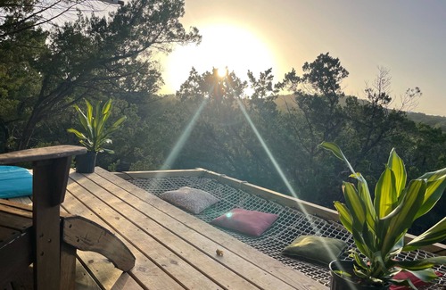 Reconnect with nature at these unforgettable glamping escapes. 3 tents available (Estrella2, Estrella3). Our hill country property is set on 11 acres of private secluded land. Only miles from dining shopping & Fiesta Texas, but far enough to feel like an outdoor paradise. Low light restrictions promote an elite stargazing experience. Amazing views, bird watching, surrounded by trees & nestled in the heart of Cross Mountain Ranch. Private gated entry. Glamorous Camping...OMG!