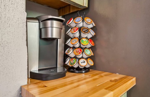 The fully equipped kitchen is the perfect place to whip up delicious meals when you’re not discovering the local restaurants. Stop by Brighter Day Natural Foods, or the Saturday morning Forsyth Farmers Market to pick up fresh, local, ingredients. You’ll find everything you’ll need to enjoy a home-cooked meal including ample cookware and dishware as well as a Keurig coffee machine with complimentary coffee to start your day.
