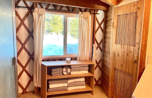 Experience the serene beauty of snow-capped peaks in winter, rejuvenating burst of life in spring, the sun-drenched days of summer exploration, and the kaleidoscope of colors in fall. Whatever the season, the Yurt beckons you to immerse yourself in the rhythm of nature, enchantment & possibility.