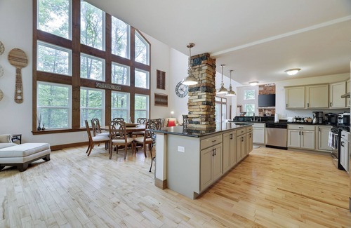 This gorgeous Masthope 5 bedroom/4 bath chalet sits just a short walk to Ski Big Bear ski area, 2 pools, mini golf, Masthope Market, Summit Bar & Grill, and more! With a wide open floor plan, full finished lower level family room/basement, 2 master suites, high vaulted ceilings with tons of natural light in the grand living room AND kitchen/dining areas, 2 lower level bedrooms, 2 main level bedrooms, and an upper level master bedroom, you'll have room for groups of all sizes! There is so much more to explore in the heart of the Pocono Mountains. Our winter guests will get discounted ski hill passes for the lift. Our summer guests will have to pay $7 pp/per day for all guests 2 and up tow swim. Pool passes must be returned to the community office drop box prior to leaving or you will incur a $75 fee.