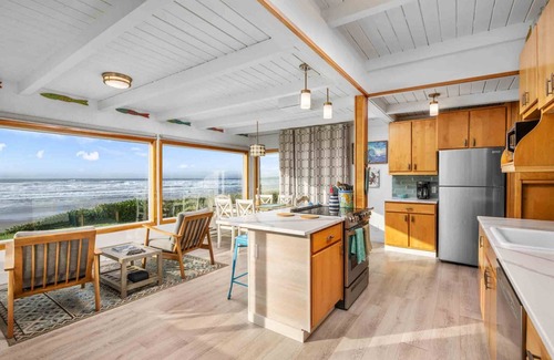 Magnificent Oceanfront Retreat, Pet Friendly, Single Level, Deck and Fire-Pit w/Views, EV Charging is located in Rockaway Beach. Magnificent Oceanfront Retreat, Pet Friendly, Single Level, Deck and Fire-Pit w/Views, EV Charging provides accommodation, featuring Sports/Activities, Entertainment, Internet, among other amenities. This House features Sports/Activities, Entertainment, Internet, to make your stay a comfortable one.