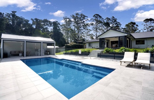 Welcome to the Main House at Sunshine Grove, a spacious self-contained holiday home set in the tranquil village of Peachester in the Sunshine Coast Hinterland. With 4 bedrooms, 2 bathrooms, a cosy indoor fireplace, a main living room plus a rumpus room, there’s plenty of space for families or groups to relax and recharge. Step outside to enjoy the sparkling pool, complete with sun loungers and a pool house, all set against the backdrop of peaceful rolling hills.