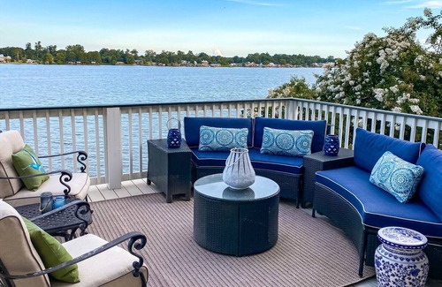 The home is located on the lake yet in the heart of town, close to shopping, stores, and restaurants.