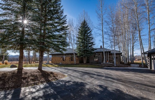 This beautiful multi acre horse property is the perfect winter refuge for peace and quiet time away from it all! This property is just minutes south of the hustle and bustle of the town square, groceries, restaurants, and everything that JH has to offer. This estate is filled with all the finer things. The living space is comfortable and inviting...a nice wood burning fireplace throws ambiance and heat into the centrally located living space/kitchen area. The master suite skirts N of the dining/living area giving amazing views of the grounds and buttes that encircle the property. You will often see coyote, elk, and moose on the grounds surrounding the house. The 1st guest bedroom/en suite bath is located off the same hallway as the master and enjoys N facing views. The light and space in each bedroom provides privacy and refuge. The 3rd bedroom/2nd guest space has a king bed and is located on the south side of the home next to the private den/TV room. The outdoor living and grounds that surround the home are tranquil and private. The front loop driveway is enclosed with beautiful trees and the owners beautiful yard art. The detached 3 stall garage will house all gear and transportation needs. This home is the perfect western refuge for a winter of outdoor fun, books by the fire, wildlife viewing, and peace/quiet...
