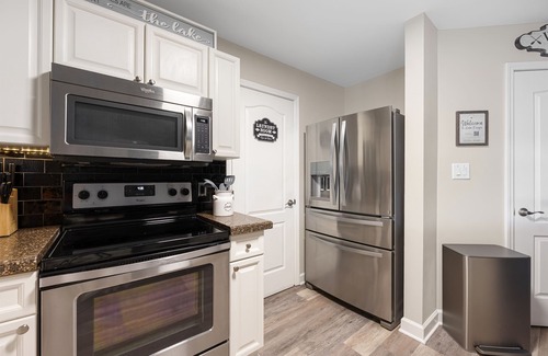 •Chef’s Corner: Fully stocked kitchen with pots, pans, cookware, including children’s dishware. Ready for your favorite recipes, any season.