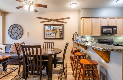 Nearly a ski-in/ski-out location! Come to this quiet, private mountain retreat that is just a short, one-block walk to Chairlift #15, located at the Juniper Springs area of Little Eagle Lodge. This townhome-style, ground-level condo boasts a fully-equipped granite kitchen with breakfast bar/stools, formal dining area/table for 6, in-unit washer/dryer, and a community heated pool (in summer) and spa (year-round). Enjoy TVs in every room, and free high-speed internet. Park your car in the secured, heated, underground parking garage.