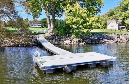 Guests have access to the 40ft dock and beautiful Sebasticook Lake swimmable water, perfect for fishing and water sports. There is 6 kayaks, 2 paddleboards and a paddleboat on site as well as life jackets for children and adults. 4.5 acres of lawn allows guestsplenty of space and privacy to enjoy their Maine lakefront vacation in peace. Lawn games, fire pit (with access to on-site firewood)as well as a volleyball net are perfect for making memories at the lake. The lake is rocky so be sure to bring some flip flops or water shoes. A short, gentle walk down across the beautiful grass lawn will allow you to access the shoreline and water front. The dock can be found underneath oak and maple trees along the shoreline, providing a nice shady spot out of the sun to lounge near the water. There is a separate area on the shoreline that allows for a nice gentle walk into the water and serves as a great spot to launch the pedal boat and kayaks.5 Burner grill and 36in blackstone griddle can be found on the large wraparound water-facing deck that is perfect for outdoor entertaining. 16 Outdoor dining chairs can be found on the deckand 10 outdoor rocking chairs can be found steps from the lake. Maplewood Lake House offers high speed internet and strong cellular service, keeping guests well connected. A dedicated work spacewith a stunning view of Sebasticook Lake can be found on the second floor.There are three 65in roku smart TV's, board games, card gamesand three separate living spacesfor recharging after a day of lakeside adventures. The water level in Sebasticook Lake begins to drop beginning on September 15 for lake maintenance. Dock will be removed on 9/15 and put back in lakelate May.Popular snowmobile and ATV destination, Moosehead Trail is just a few minutes down the road and is part of the Maine Interconnected Trail System. The Large driveway provides plenty of room to park snowmobiles, ATVs and recreational vehicles for all your off-roading adventures. Landscape lighting is programmed to come on at sunset and turns off 2 hours later.