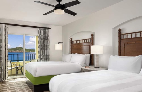 Perched on a hillside overlooking Pacquereau Bay and St. Thomas Harbor, Marriott’s Frenchman’s Cove covers 13 acres of the finest property in all of the U.S. Virgin Islands. Make your escape to this enchanted resort on St. Thomas and explore tropical gardens, tour historical homes, and relax on the secluded beach. The resort offers an infinity pool with a waterslide and whirlpool spa. Complimentary shuttle services are offered as well as on-site restaurants and bars. Get ready to relax in this fabulous 2-bedroom resort in St Thomas. This serene property features 1 king bed, 2 queen beds, and a cozy living room with an additional full bed. Enjoy the excellent amenities like a washing machine, AC, and High-Speed WiFi. We're happy to assist with any questions while you stay at the resort.