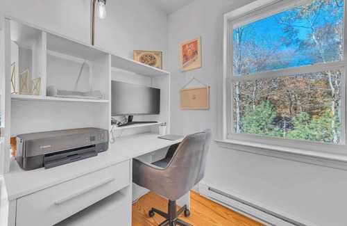 This Masthope chalet is the perfect Pennsylvania escape, no matter the season. Boasting 4 bedrooms, 2 bathrooms, a wood-burning stove, workspaces, and more, this home has everything you need right at your fingertips. Spend the colder seasons hitting the slopes at Ski Big Bear, and on warm days, cool off at Westcolang Lake or one of the community pools. When the sun begins to set, grill dinner then gather by the fire pit to make s’mores and recount the day's memories with family.