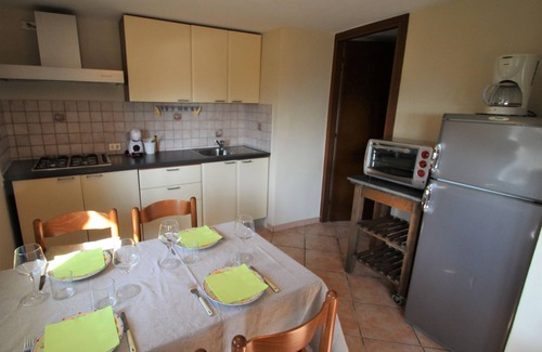 "Mauro I", 2-room semi-detached house 45 m2. Practical furnishings: living/sleeping room with 1 double sofabed, satellite TV and CD-player. 1 double bedroom. Open kitchen (4 hot plates, mini-oven, freezer, electric coffee machine) with dining table. Shower/bidet/WC. Gas heating. Heating available only from 15.09. to 30.05. Patio. Terrace furniture, deck chairs (2). Panoramic view. Facilities: children's high chair, baby cot for up to 2 year olds. Internet (WiFi, free). Please note: non-smokers only. Private entrance. 10306600025