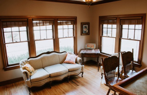 The entire house is yours to enjoy! Downstairs has two bedrooms (full/twin), a full bathroom, dining, kitchen, living room, and parlor. Upstairs has 3 bedrooms, a full bathroom, and kitchenette. Besides a queen and full, the third bedroom has a toddler bed, crib, twin bed, and a floor mattress. There is also a rollaway bed in the closet upstairs for additional sleeping options. The basement houses the laundry. If you are planning an event or party at the Mayberry mansion there’s is an extra $20 per person per day for foot traffic this applies to the event or events number of days. please discuss the details with us after booking your stay.