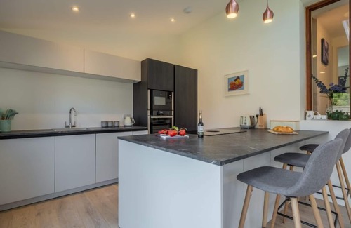 Converted in 2021 by award-winning local builders, Meadow View is one of just four barns forming part of the exclusive Jex Farm Barns complex. This beautiful barn offers very spacious, deluxe accommodation for up to four lucky guests. Entering the barn through the wide glazed entrance, you walk into a surprisingly spacious sitting room with two seating areas, a cinema-sized television and a wood burning stove to light when a cosy, warming ambience to boost a chilly day is on the cards. Arrow slit windows to either side of the stove frame picturesque countryside views. Steps down from the sitting room lead to a generous-sized open planing kitchen/dining room that almost runs the width of the barn and is flooded with light from both double bi-fold doors and Velux overhead skylights. The fully fitted well-equipped kitchen has top quality Siematic handless units, and Neff and Bora integrated appliances. Slide back the bi-fold doors, and enjoy an outside in dining experience. To the side of the kitchen is a rear lobby with a cloakroom. Returning to the sitting room, walk to the back of the room and a ground floor en-suite bedroom is tucked behind, and has the option of a super-king size bed that can be made up into full-size twin beds. Upstairs, on the first floor, is a further bedroom (king-size) also with en-suite facilities.