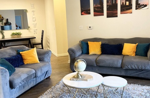This gated Luxury 2 Queen Bedroom/2 Bath is located near Houston's Medical Center 2.5 miles, NRG 2 miles, Galleria Mall 9 miles & Downtown 8 miles . The unit has 5-star amenities like: High speed WiFi -All utilities included -Free parking and gym -Pool - TV available in every room - NETFLIX , HULU & DISNEY PLUS -Full kitchen with coffee maker, blender, pots and pans , coffee and tea -Washer and dryer.