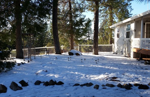 This Mediterranean style villa is nestled in the middle of 5 acres of serene and beautiful natural settings with beautiful trees and hiking trails through the EID property, this property is a few minutes way from Jenkinson Lake (Sly Park Lake and Resort area) and 45 minutes away from Lake Tahoe. It has 3 bedrooms and sleeps up to 7 people comfortably. This is where you get off the grid and just relax and put all your worries behind you. The villa has BBQ grill and inside has foosball, corn hole bean bag game, dart board, and for relaxing all day under the sun.