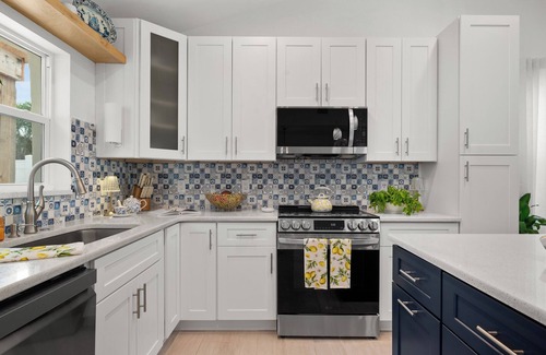 Come and spend a delightful winter in comfort and style in a two bedroom, two bath home with an office. This resort style property features a vaulted living area with a modern kitchen for culinary delights, But that's just the beginning, you'll quickly move outdoors to the dining and outdoor living spaces with a built in grill and sink for entertaining, Perfect for cocktails, dinners under the bougainvillea covered pergola and relaxing under the stars as the evening fades away. The artist studio guest house in the back is a private getaway or place for friends and family to visit while you're here. Enjoy the beautiful beaches a five minute walk away and all of St Petersburg for it's museums, restaurants and entertainment.