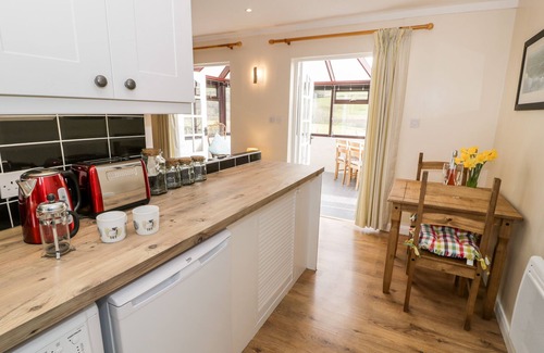 Melin Newydd is a lovely romantic cottage nestled in the village of Garndolbenmaen, near Porthmadog, Wales. Set all on the ground floor, the property hosts one super-king-size bedroom (zip/link), sleeping a total of two guests and served by a shower room. Completing the interior is an open-plan living room with a kitchen, dining area and sitting area with a woodburning stove and a conservatory. Outside has a patio area with furniture, as well as off-road parking for one car. Melin Newydd is a wonderful choice for a remote break with your partner. Note: the property only accepts a minimum breaks of 3 nights.