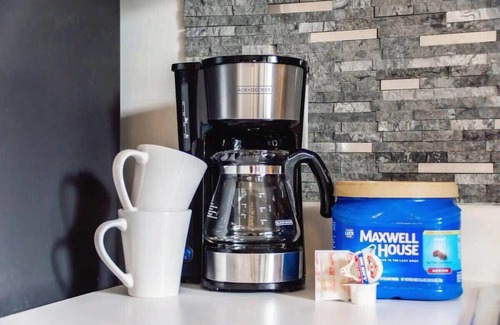 The kitchen has everything you could need. Fully stocked with microwave, stove/oven, refrigerator, plates, silverware, utensils, pots, pans, cooking essentials, coffee, coffee cups and coffee maker. Table to dine at. All linens, pillows, towels, washcloths are provided. Linens for pull out sofa in the closet. Each guest will be provided with toilet paper, paper towels, and travel amenities. *No Washer and Dryer or Dishwasher*